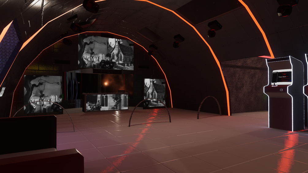 This quest compatible space world features a video player, DJ booth with private access list, staff control panel, staff room with a security camera system, drinking games, shot timer and even private chill pods. This quest compatible DJ and party world takes you on a journey through outer space, vibe in a cozy vibrant club space with your PC and Quest friends. This world is ready out the box, you can slap your branding on it and run it as is or modify it to your liking. It also has a dynamic movement/planet system where you will see planets of the solar system as you wizz by.